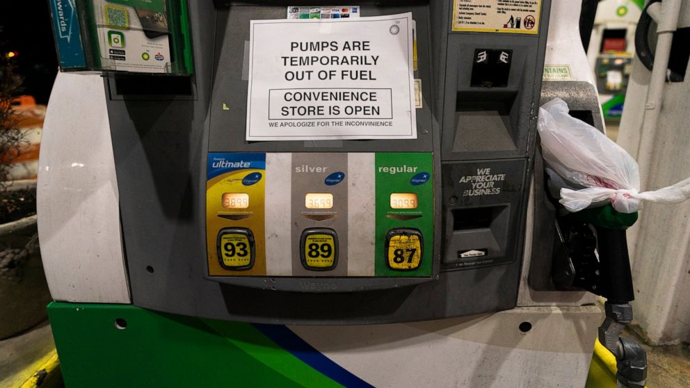 The tracking service GasBuddy.com on Friday showed that 88% of gas stations were out of fuel in the nation’s capital, 45% were out in Virginia and 39% of Maryland stations were dry. About 65% of stations were without gas in North Carolina, and nearly half were tapped out in Georgia and South Carolina.