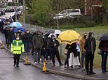 Anyone living in Bolton has been invited to get a Covid jab before 5pm today amid fears over the spread of the Indian variant. Pictured: A queue for the jabs at the pop up centre