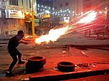 Palestinians throw fireworks against Israeli forces during clashes in the West Bank city of Hebron overnight