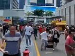Bystander videos published by local media on Weibo showed the skyscraper shaking on its foundations as hundreds of terrified pedestrians ran away outside.
