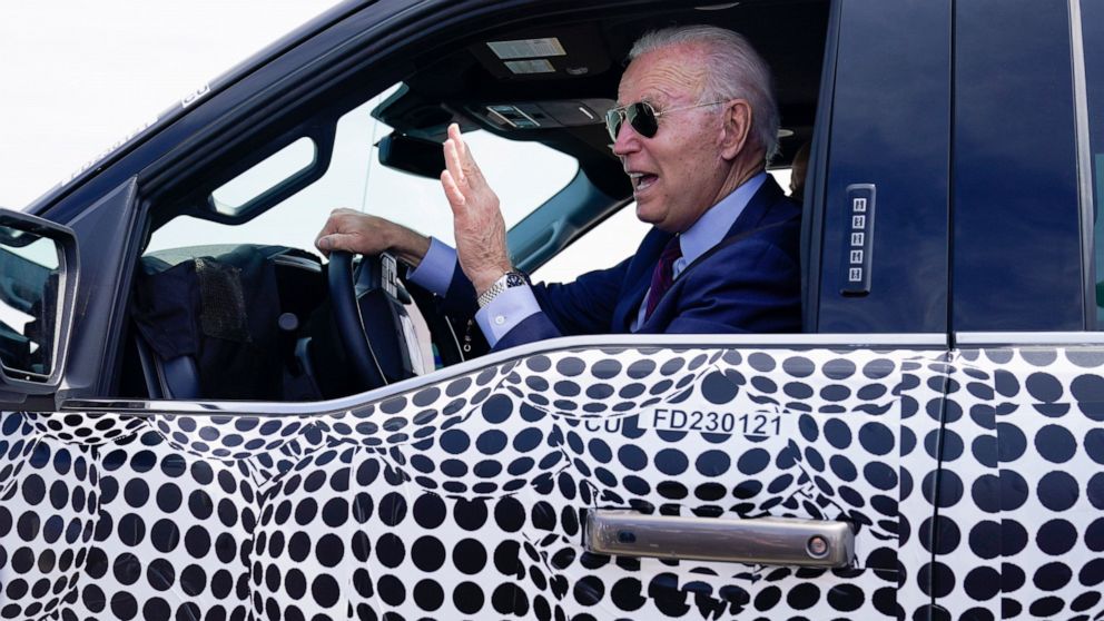 The self-described “car guy” took a spin in the new Ford F-150 Lightning truck during a visit to a Ford safety testing center Tuesday as part of a trip to Michigan to sell his $2 trillion infrastructure plan. The automaker showed off its new electric truck to coincide with Biden’s tour of Ford’s Rouge Electric Vehicle Center in Dearborn, where the truck will be produced.