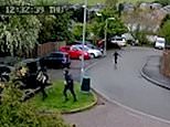 The thieves were filmed entering the garden through a back gate before passing the dog over the fence and fleeing.