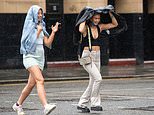 Pictures showed people flocking to pubs and bars while doing their best to avoid the downpours of rain with some desperately held pieces of clothing over their heads.