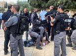 Pictured: Israeli security forces take into custody a Palestinian as Jewish extremists make a raid on Al-Aqsa Compound in East Jerusalem on May 23