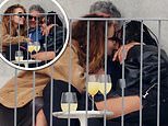 In pictures obtained exclusively by MailOnline, the trio appeared to be in great spirits as they wrapped their arms around each other and beamed smiles over al fresco drinks.