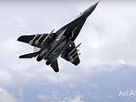 Aviation experts have claimed that Belarus threatened to shoot down the Athens to Vilnius Ryanair flight unless it did not land immediately (pictured: a MiG-29 fighter jet involved in the incident arriving back at base in Belarus). Their presence has stoked fears of Russian secret services involvement in a murky operation to arrest opposition journalist Roman Protasevich, 26, a passenger on the plane who was detained with his girlfriend Sofia Sapega, 23, in Minsk