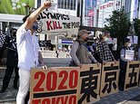 Doctors have now joined calls for the government to cancel the Tokyo Olympics, saying the risks of holding a mass event now are too great (pictured, protesters in Tokyo)