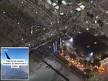 ‘The initial crowd at the beach grew in size and moved to the downtown area where it was estimated to be over 2,500,’ the Huntington Beach Police Department said in a statement.