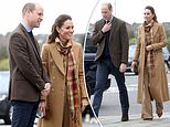 Kate Middleton wrapped up in a camel coat and tartan scarf as she joined Prince William in Orkney today.