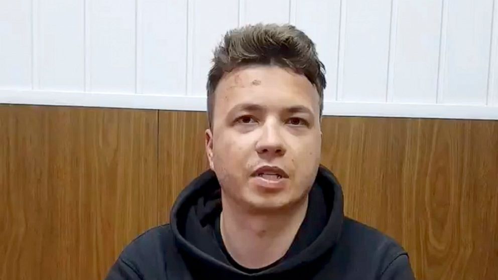 Pratasevich, who left Belarus in 2019, has become a top foe of Lukashenko with a popular messaging app he ran playing a key role in helping organize the huge protests. After his detention, the 26-year old journalist was seen in a brief video clip on Belarusian state television late Monday, speaking rapidly to say that he was confessing to some of the charges authorities have leveled against him.
