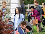 PICTURE EXCLUSIVE: Stepping into the Sussexes’ shoes! Actors playing Prince Harry and Meghan in a new Lifetime movie about the couple’s ‘escape from the palace’ are seen filming for the first time