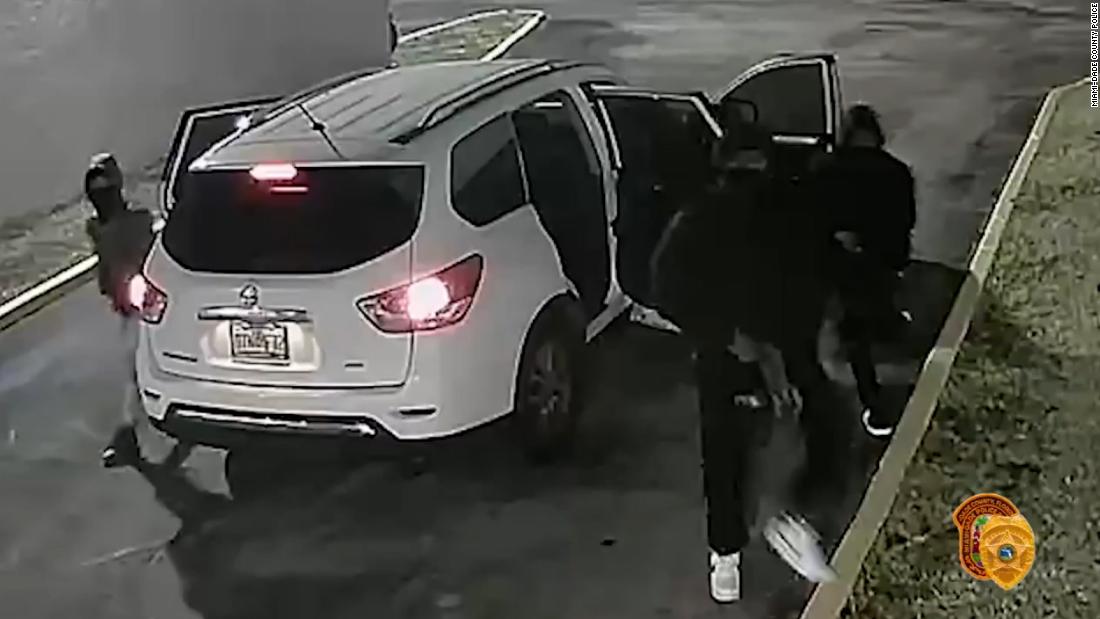 Miami-Dade County police released surveillance video to the public showing three masked individuals carrying guns exiting a SUV as part of their investigation into a mass shooting that killed two people and wounded 21 more. CNN’s Natasha Chen reports.