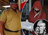 Wearing jeans, a red hoodie and black face mask, the 32-year-old kept her head bowed as she was loaded onto the back of a police vehicle