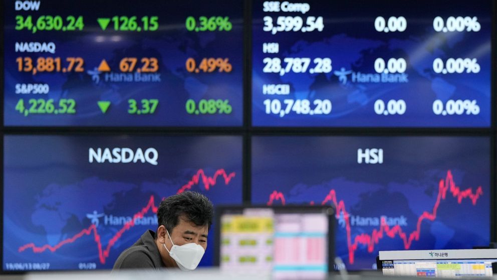 Hong Kong’s Hang Seng lost 0.3% to 28,709.29 and the Nikkei in Tokyo edged 0.2% lower to 28,963.56. The Shanghai Composite index declined 0.7% to 3,574.24. In Australia, the S&P/ASX 200 gained 0.2% to 7,298.00. In Seoul, the Kospi fell 0.2% to 3,247.57.