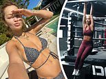 In one clip, the 30-year-old completes a gruelling round of rotating pulls with a resistance band,