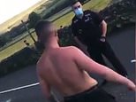 Moment topless man boasts to police before MOONING after farmer used his digger to overturn car