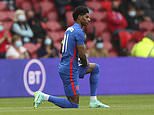 Supporters’ groups said the political gesture ahead of kick off has now ‘lost its original meaning’ and ‘is being misinterpreted’. Pictured: Marcus Rashford before the Romania game