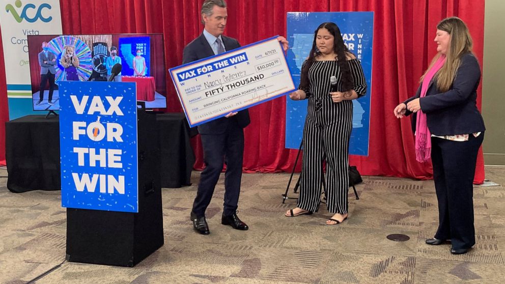 One of last week’s $50,000 winners was 17-year-old Nancy Gutierrez, who is about to finish her junior year of high school in the San Diego area. Newsom indicated the money would go into a savings account because Gutierrez is under 18.