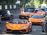 Police have regularly been called in to crack down on the drivers’ ‘exhibitionist behaviour’ and speeding. Pictured: Three orange Lamborghinis drive through the village