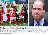Prince William sends well wishes to Christian Eriksen and his family after midfielder collapsed during Denmark’s Euro 2020 opener… as he hails English referee Anthony Taylor and the medical team for their ‘calm and swift action’