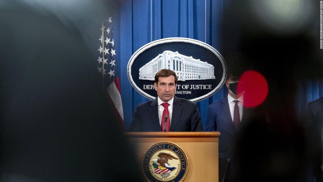 John Demers, assistant U.S. attorney general for national security, speaks during a news conference at the Department of Justice in Washington, DC in October 2020.