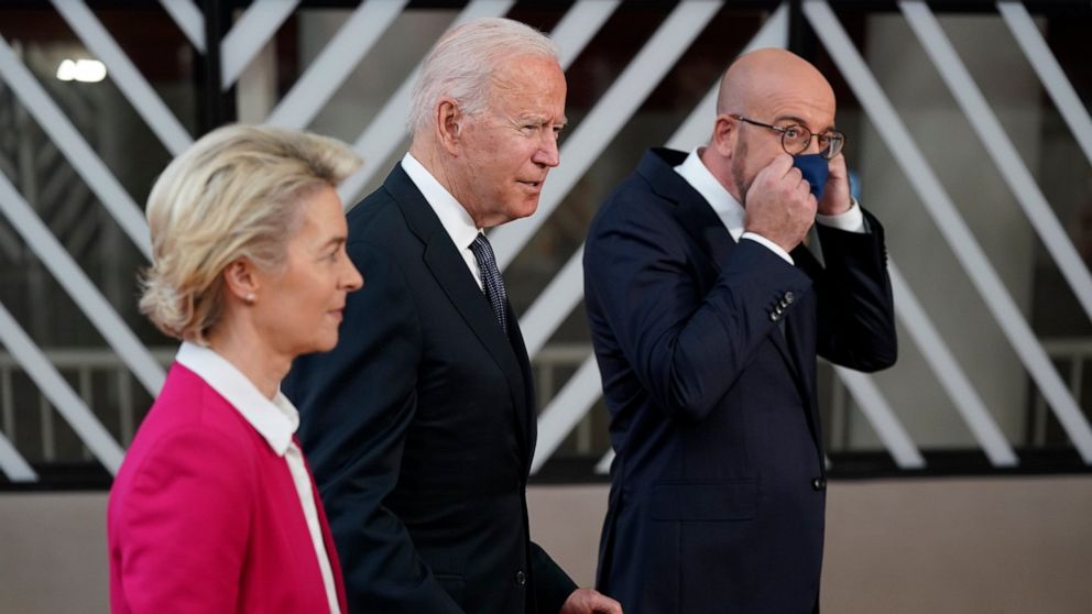 After a pair of summits with Group of Seven world leaders in the U.K. and then NATO allies in Brussels, Biden meets Tuesday with European Council President Charles Michel and European Commission President Ursula von der Leyen.