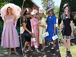 Glamorous women put on showstopping displays in bright summer frocks while men looked dapper in top hats and tails as they arrived at the Berkshire racecourse for a day of fun in the sun.