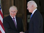 Putin smiles with Biden as the pair shake hands ahead of their highly-anticipated summit to address failing relations