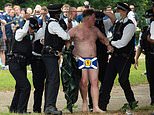 A naked Scottish fan is arrested by police as they congregate in Hyde Park, London ahead of the Uefa clash tomorrow