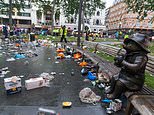 And the clean-up begins…Tartan Army leave Leicester Square covered in litter for second night after defying dispersal order to celebrate Scotland’s 0-0 draw with England as police arrest 26