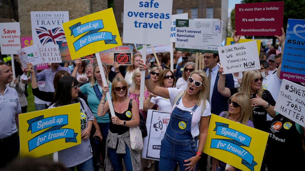LONDON — The U.K.’s travel industry held a day of action Wednesday, pressing the British government to allow more quarantine-free travel and provide cash-strapped businesses with much-needed financial support.