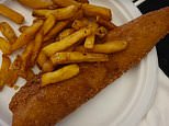 Another shows noodles swimming in oil and a small plate of fish and chips turned brown by over frying.
