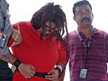 Singaporean Gaiyathiri Murugayan subjected her maid Piang Ngiah Don, 24, to 14 months of abuse – including torture and beatings – that culminated in her death in 2016. Pictured: Police officers escort Murugayan (centre) to her home for investigations in Singapore in 2016