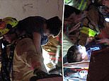 ‘Please don’t leave me’: Moment boy is pulled from under his bedframe after being buried in the rubble of 12-story Miami Beach apartment building which collapsed leaving at least one dead and 99 missing