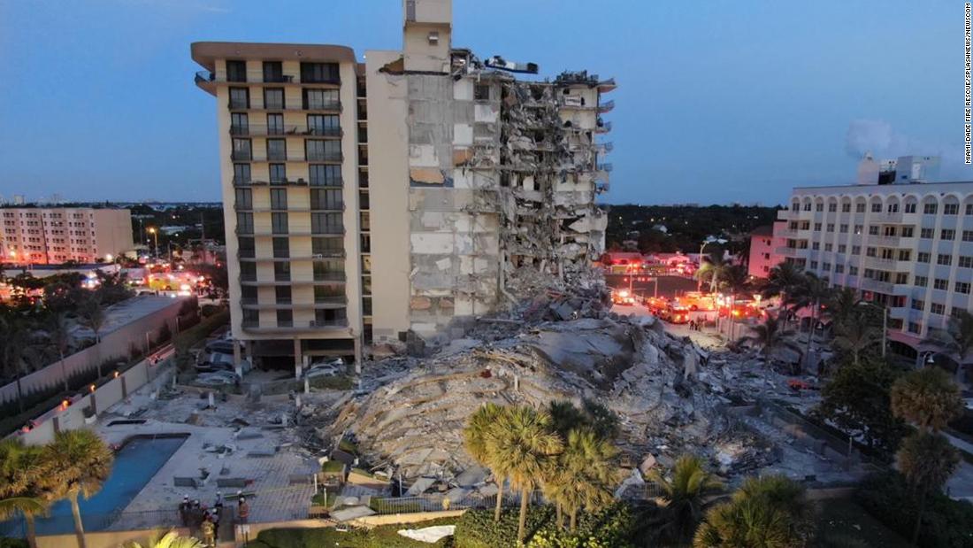 Since early Thursday morning, first responders have been working at the scene at Champlain Towers South, a few miles north of Miami Beach. A side of the building has fallen, leaving huge piles of rubble.