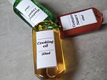 While the bottles are normally used to hold bathroom liquids, such as shampoos and soap, the seemingly ‘genius’ idea worked just as well at storing small amounts of oils and condiments.