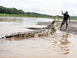 - Tourist boat driver ‘Guido’ jumps into the Tarcoles River to hand-feed wild crocodiles measuring up to 17ft