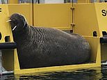 She told the BBC: ‘Walruses spend 25 per cent of the time resting so Wally is going around trying to find resting places.