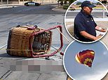 The basket then plummeted to the ground in flames, landing in a busy street close to a local CVS pharmacy.