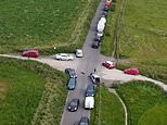 Drone footage shows the event’s scale, with cars lining up the country road as a significant number of people at the rave are thought to have travelled from outside Sussex