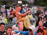 Beers were sent flying through the air and one fan even stripped off to his St George’s Cross underwear as revellers went wild at big screen events from London to Newcastle as the Three Lions secured their glorious return to the capital in front 60,000 fans on Wednesday.