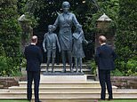The Duke of Cambridge (left) and the Duke of Sussex (right) look at a statue they commissioned of their mother Diana, Princess of Wales, in Kensington Palace's Sunken Garden