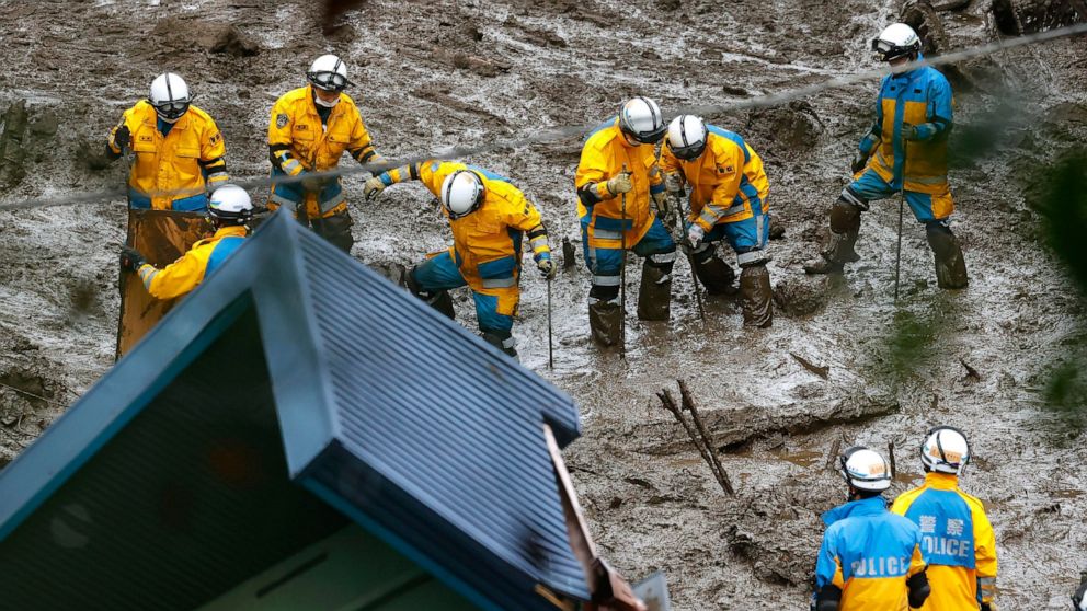 Prime Minister Yoshihide Suga told reporters that rescue workers are doing their utmost “to rescue those who may be buried under the mud and waiting for help as soon as possible.” Three coast guard ships, and six military drones were backing up hundreds of troops, firefighters and others toiling in the rain and fog.
