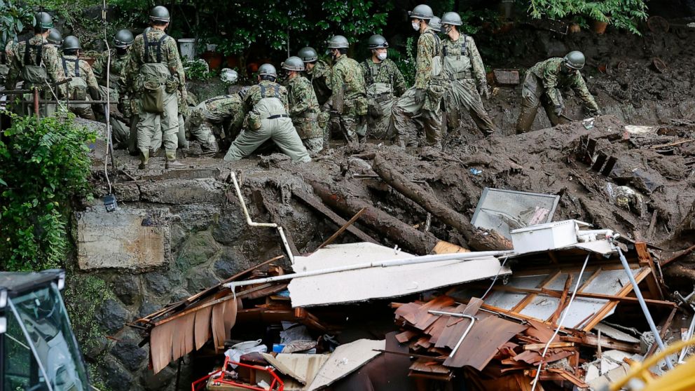 The mudslide struck Atami’s Izusan neighborhood, known for its hot springs, a shrine and shopping streets. Atami is about 100 kilometers (60 miles) southwest of Tokyo.