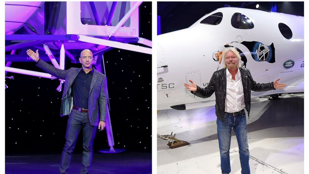 Branson’s piloted plane has already flown to space three times. Bezos’ has five times as many test flights, though none with people on board.
