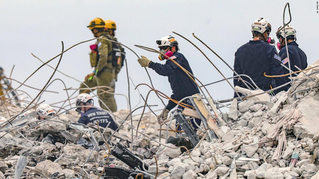 Search-and-rescue teams look through the rubble of Champlain Towers South on June 29.