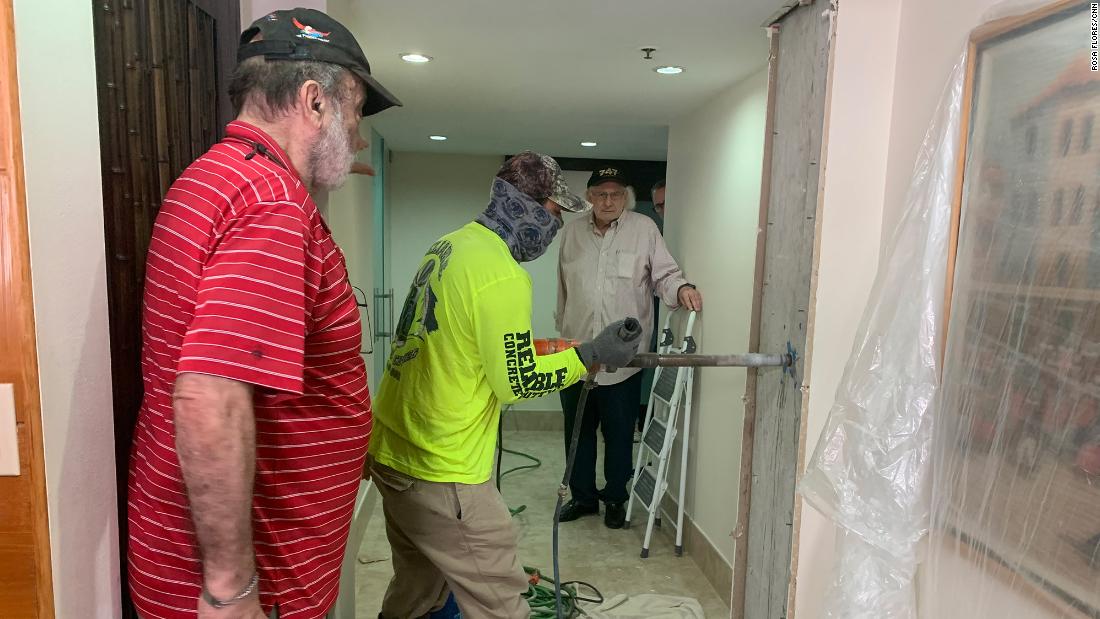 On Friday, CNN accompanied him as he traversed several floors of the 12-story building, ordering tiles pulled up from the pool deck and concrete samples drilled from the wall of a fifth-floor apartment for a series of tests that he hopes will help to explain the disaster scene down the beach.