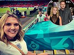 Conor Coady’s wife Amie shared images of the evening showing guests singing the team’s Three Lions anthem and a large screen in the background reading: ‘Congratulations England. Let’s make history.’