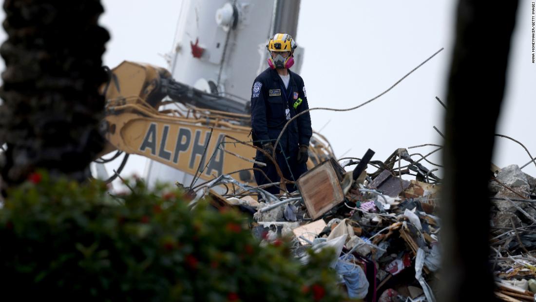 Crews at the site paused their work briefly Saturday morning because of lighting, but recovery efforts resumed within an hour, Levine Cava said. The work will continue despite rain that is expected throughout the day.