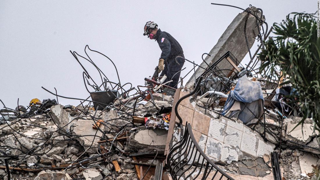Rescue teams from Pennsylvania search the rubble of the Champlain Towers South on July 8.